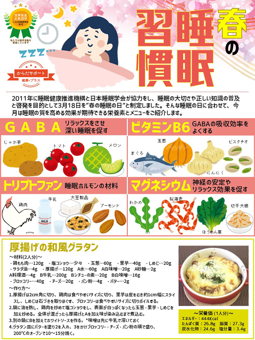 ◆認定年月日 2020年2月27日 ◆認定期間 2020年4月1日から食育活動継続期間中 ◆認定対象 栄養食グループ